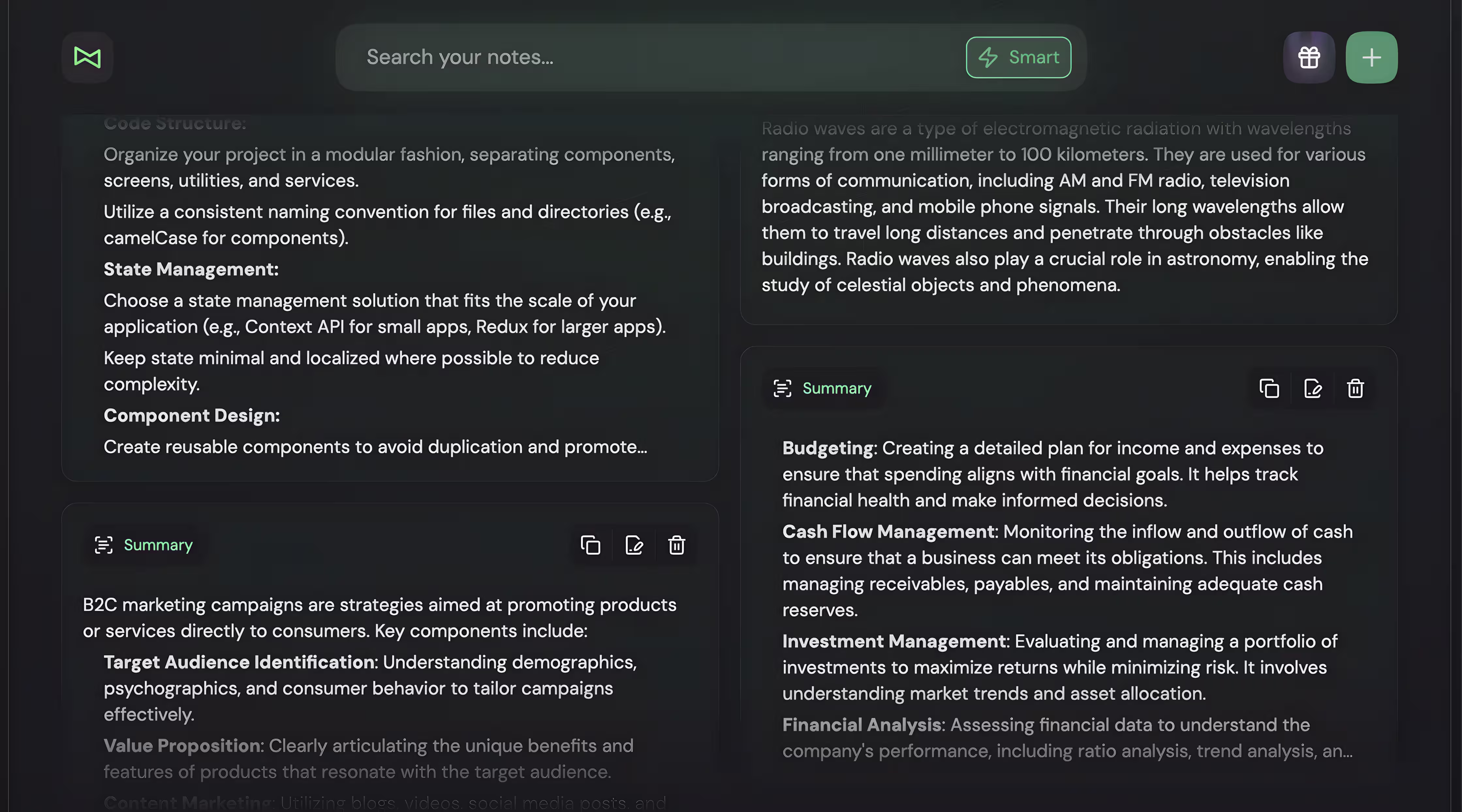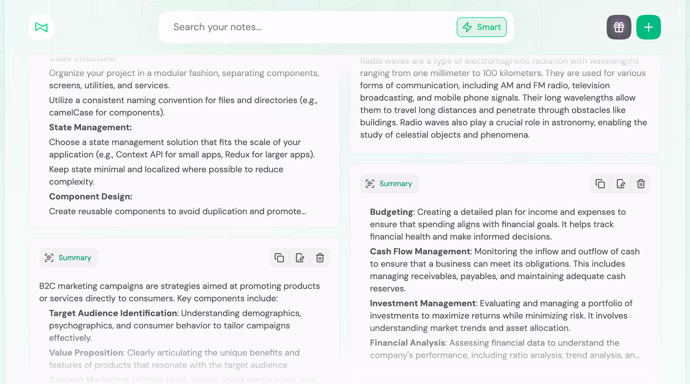 - Smart search and summarization